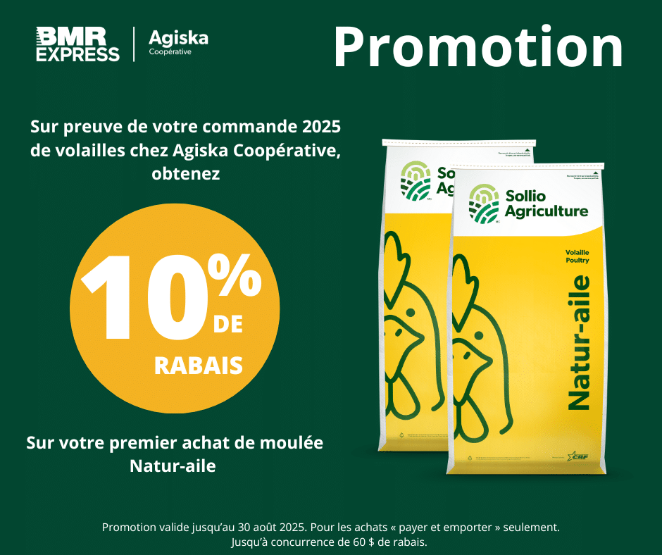 En commandant vos volailles dans l’un de ces 6 magasins, vous pouvez bénéficier d’un rabais de 10 % sur votre premier achat de moulée Natur-ail.