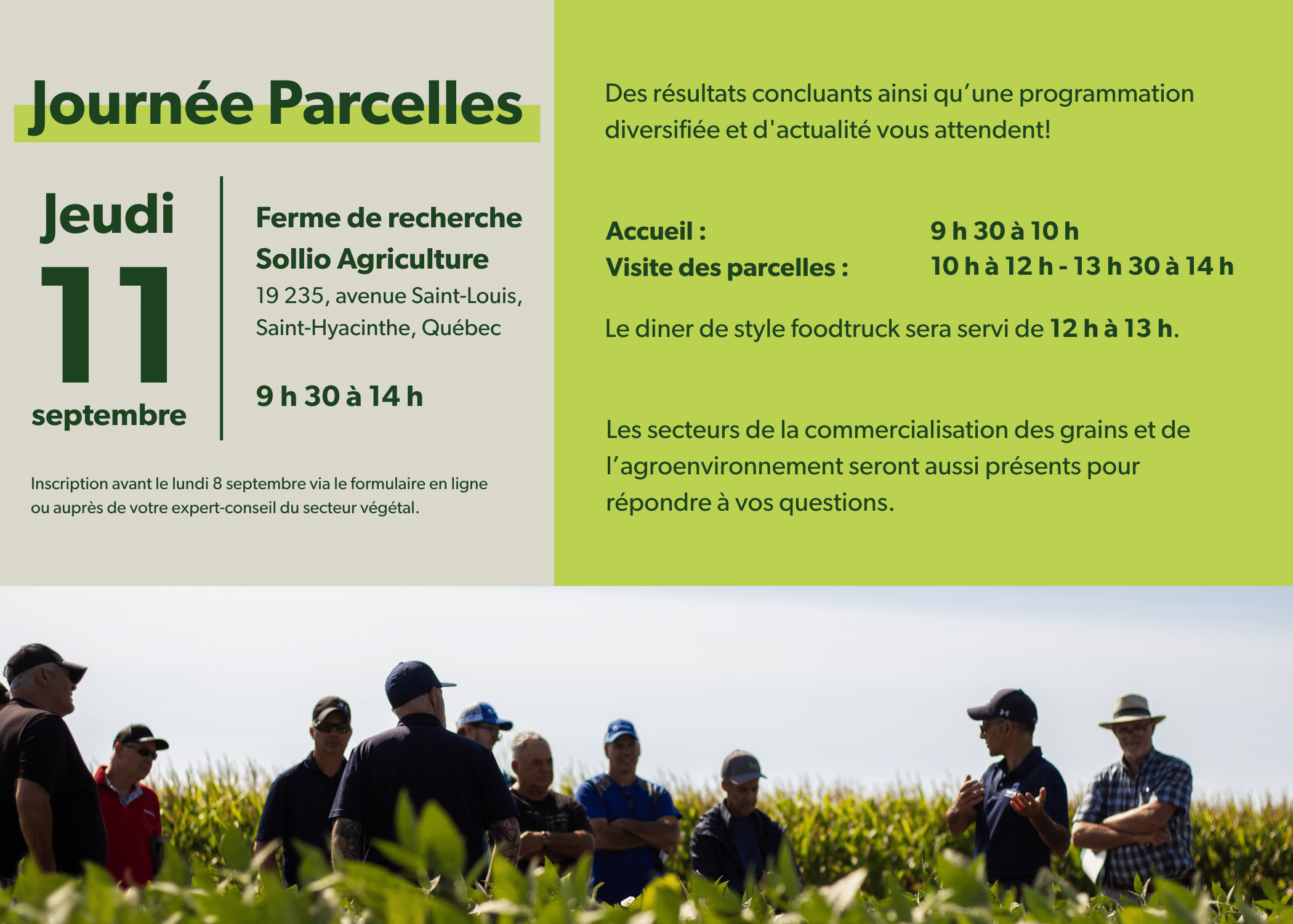 Toute l’équipe d’Agiska Coopérative vous invite à sa journée parcelles le 11 septembre prochain à la ferme de recherche Sollio Agriculture.